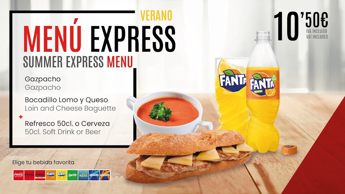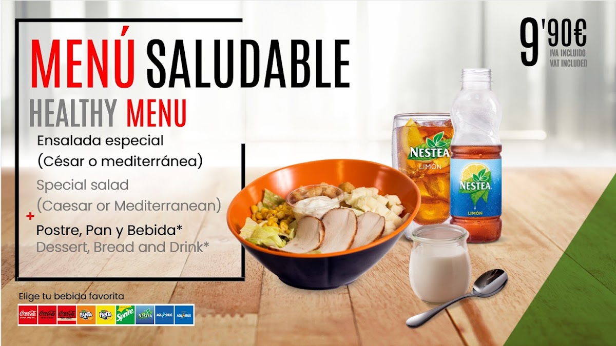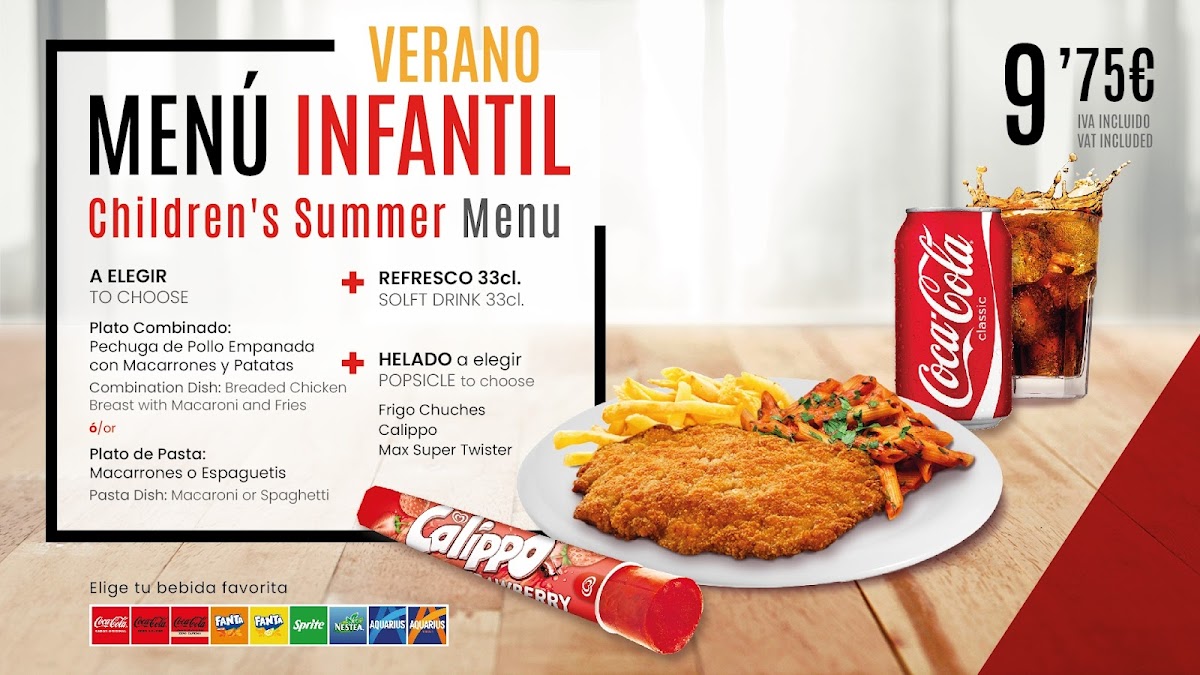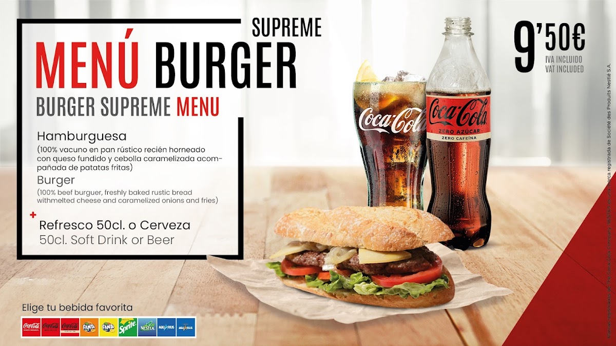 The menu features enticing options such as the Burguer Supreme, made with 100% beef in freshly baked rustic bread, served with caramelized onions and crispy fries for just €9.50. For a healthier choice, the Special Salad comes with a drink and dessert for €9.90, perfect for the summer heat. The Menu of the Day provides an exceptional value at €15.50, offering a multi-course experience that includes your choice of starters and main dishes, along with drinks and dessert.